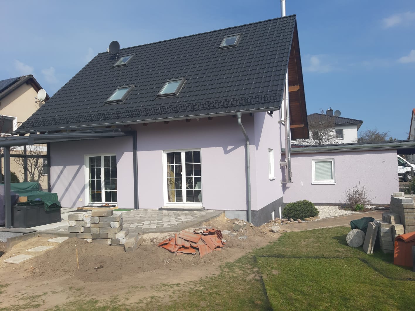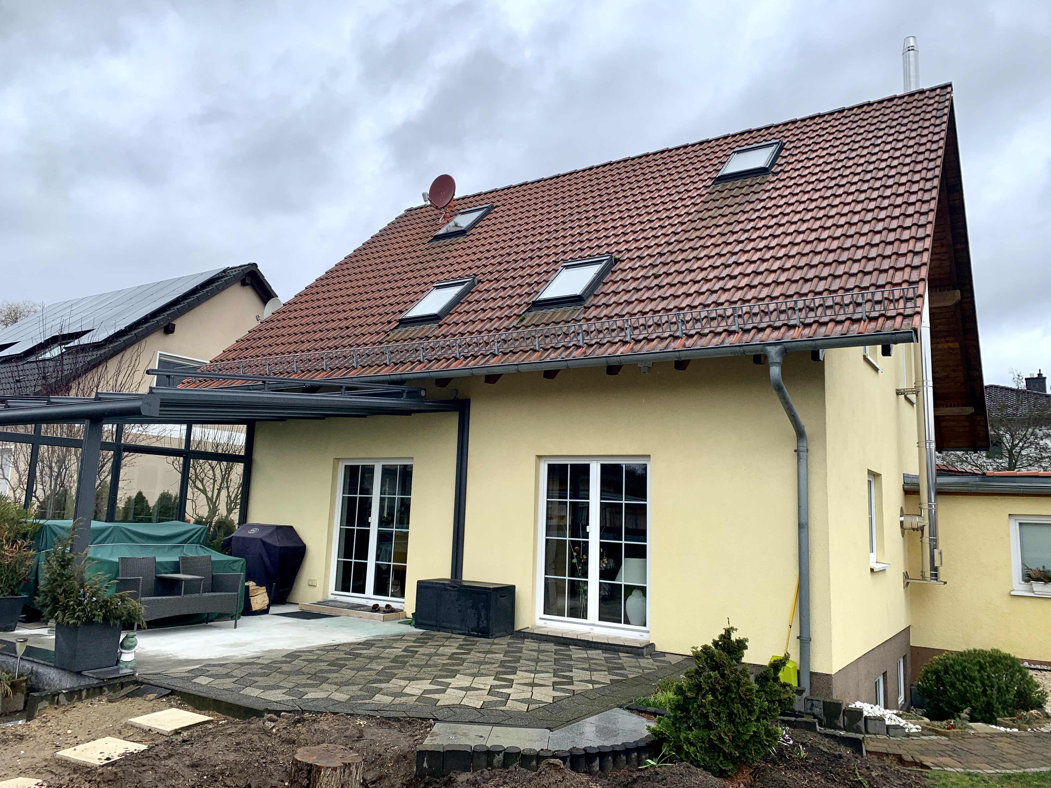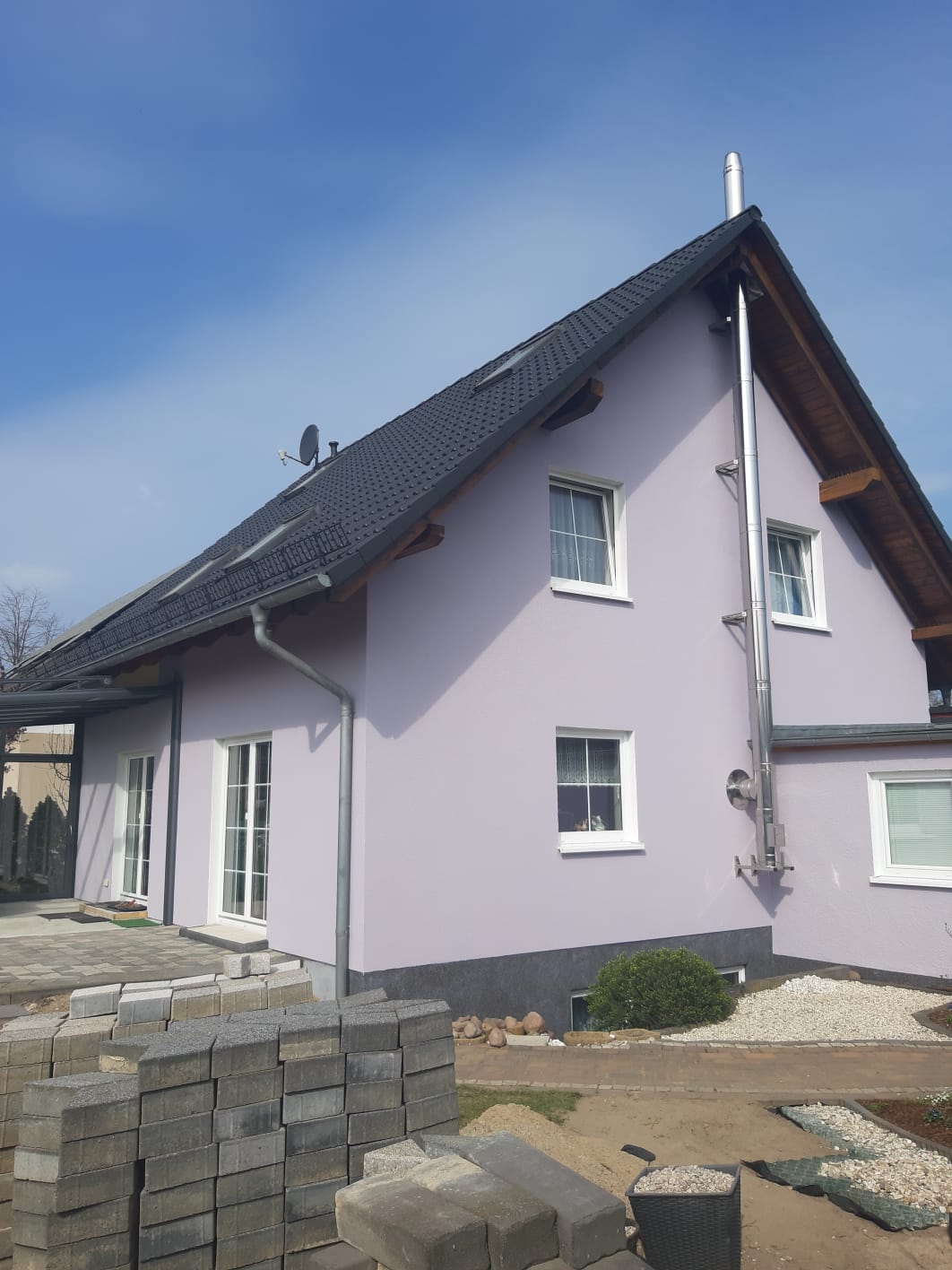 Dieser Farbton hat das komplette Haus verändert — weichere Linien, mehr Leichtigkeit, ein ganz individuelles Erscheinungsbild. Nach der Dachsanierung, der neuen Fassadenfarbe und den überarbeiteten Holzelementen sah das gesamte Haus wie ein moderner Neubau aus — aber mit dem charmanten Charakter eines gepflegten Bestandsgebäudes.